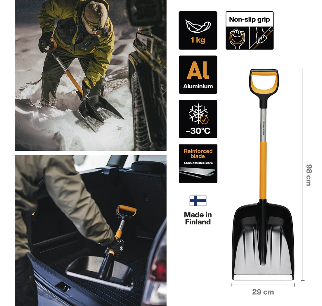 Lopata auto Fiskars X-series 1057393 este un accesoriu esential pentru sezonul rece, ideala pentru deszapezirea rapid a masinii. Designul compact si usor permite depozitarea facila in portbagaj, iar lama rezistenta asigura performanta ridicata la indepartarea zapezii. Manerul ergonomic ofera confort si control optim, facand aceasta lopata Fiskars un aliat de incredere in orice calatorie de iarna.